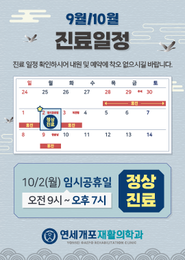 9월 ~ 10월 진료 일정 안내드리오니,